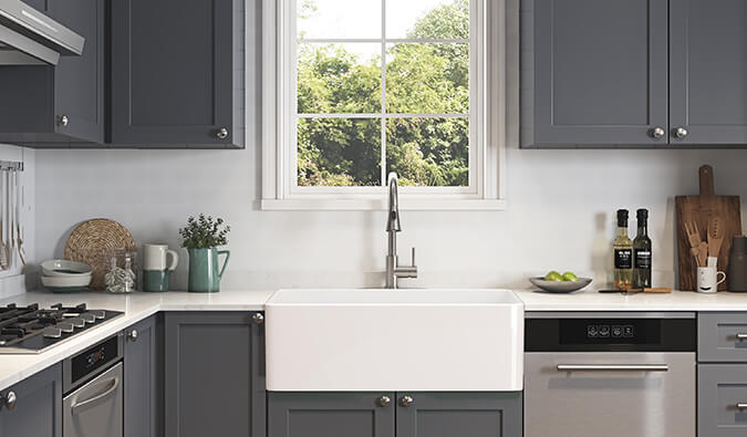 A farmhouse sink can add elegant style and functionality to a kitch...