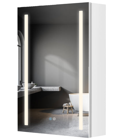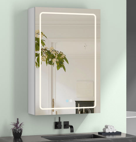 This 30-inch lighted medicine cabinet for bathroom has a built-in defogger, just touch the anti-fog sensor, the defogging function will be activated, and it will start to remove the water droplets after 5 minutes. You can touch the smart button of the led medicine cabinet with mirror for bathroom to turn on the light or defog function, and even the touch of wet hands can respond quickly.