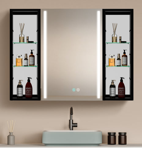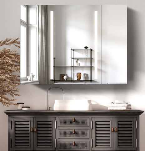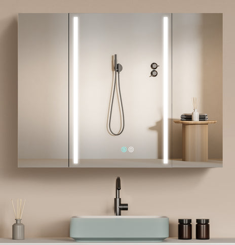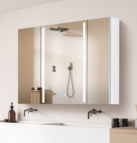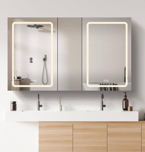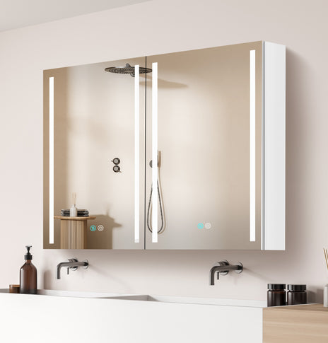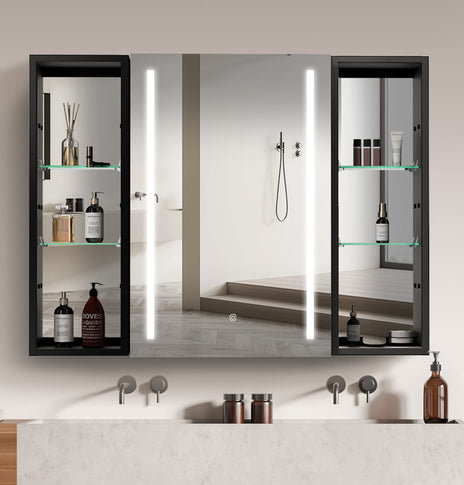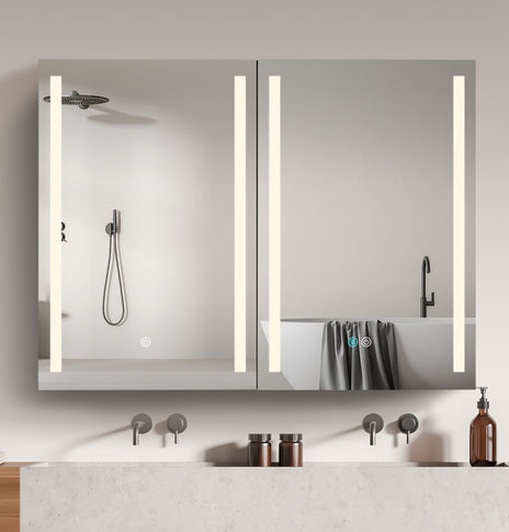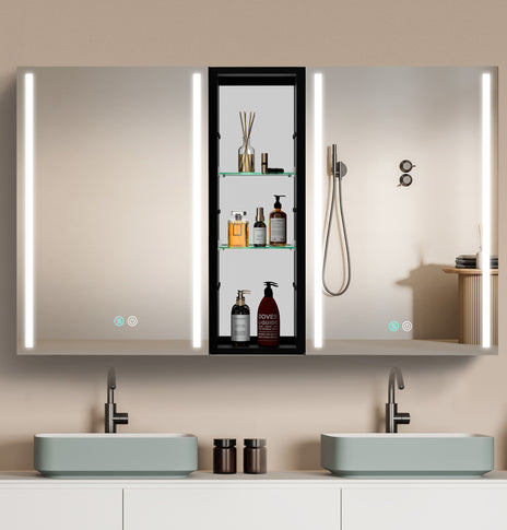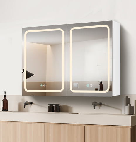 GETPRO medicine cabinets meet your needs. This large 30-inch medicine cabinet with lights comes with 1 pc medicine cabinets. One main led medicine cabinets can create a big volume of storage in your bathroom, which can meet ladies' stored all kinds of cosmetics. It's very useful and convenient for your daily life. It's a great gift to any lady or man. Main medicine cabinet with anti-fog function which has mirrors on both sides of the door, interior walls & both side panels, which makes it a bathroom medicine cabinet with mirrors on all sides., and 3 tempered glass shelves with height adjustable.