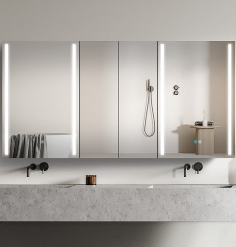 You can choose any size medicine cabinets according to your own needs. You can make it as 40 inch, 50 inch and 60 inch medicine cabinets by choosing our big size LED medicine cabinet and small medicine cabinet. You can put them together or separately install them easily. Easy to move and install.