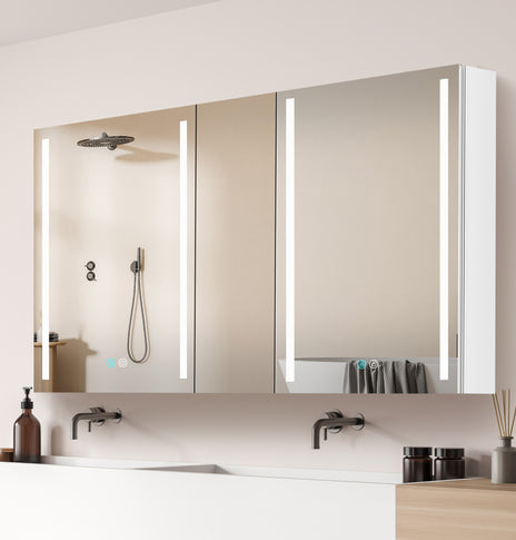 You can choose the desired lighting color and brightness for different scenes. Lightly touch the power button of the illuminated medicine cabinet with lights to switch the light color, and a long press to adjust the brightness steplessly. Owning a smart medicine cabinet is your smart choice.