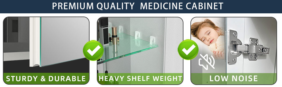 GETPRO medicine cabinets meet your needs. This large 60-inch medicine cabinet with lights comes with a 3 pc lighted medicine cabinet. three main led medicine cabinets. One of the medicine cabinets build-in new design vertical storage which can meet ladies' stored cosmetics. It's very useful and convenient. It's a special design for women. The other main medicine cabinet with anti-fog function which has mirrors on both sides of the door, interior walls & both side panels, which makes it a bathroom cabinet with mirrors on all sides., and 2 tempered glass shelves with height adjustable. This lighted medicine cabinet allows for flexible storage for all sizes of your bathroom items. The tidy and spacious storage supplied by this medicine cabinet brings you a tidy bathroom storage. Say goodbye to messing with this medicine cabinet for the bathroom with a mirror.