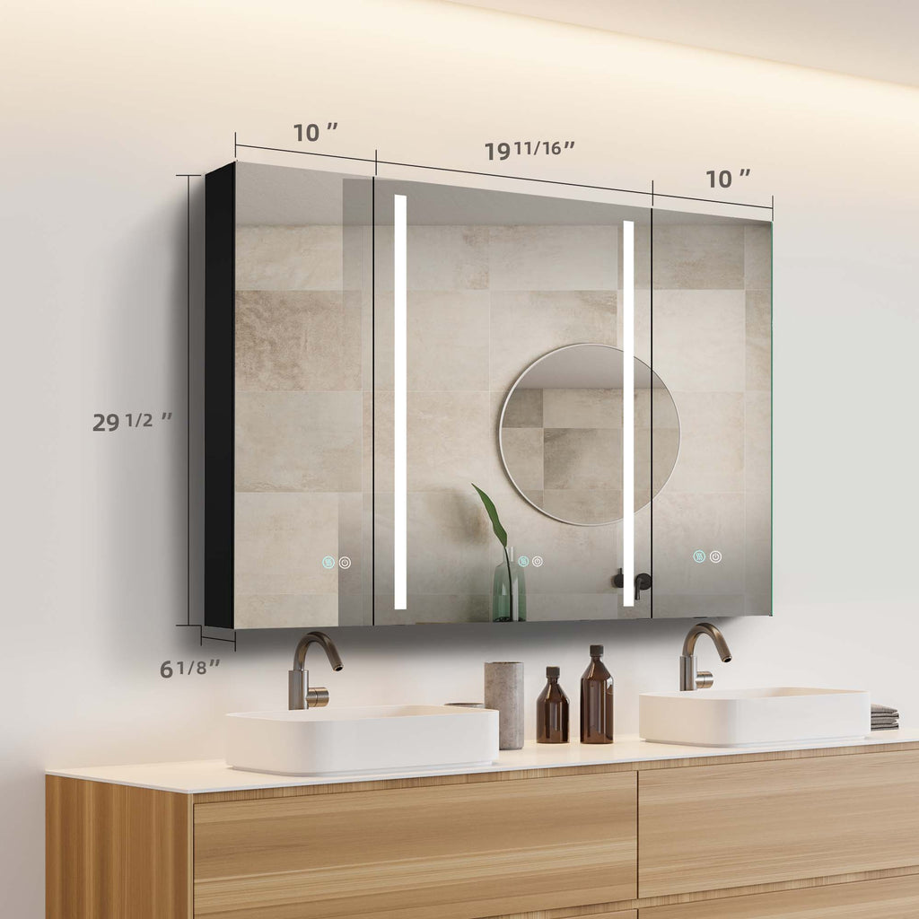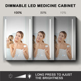 GETPRO Medicine Cabinets LED Lighted 40X30 Bathroom Medicine Cabinet Anti-Fog Function 3 Color Lights Dimmable Brightness Modern Three Doors Surface Mounted Aluminum Main Cabinet Left Door